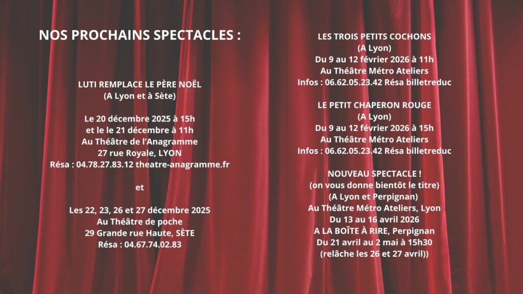 Depuis 2008, Véronik Morelli et Philippe Wood, les deux intervenants principaux de La Compagnie des Deux Fous, jouent des spectacles pour enfants ou pour adultes, proposent des animations à domicile et encadrent stages et cours de théâtre (Lyon, Paris, Montpellier, Perpignan, Marseille, Avignon, Alpes…)